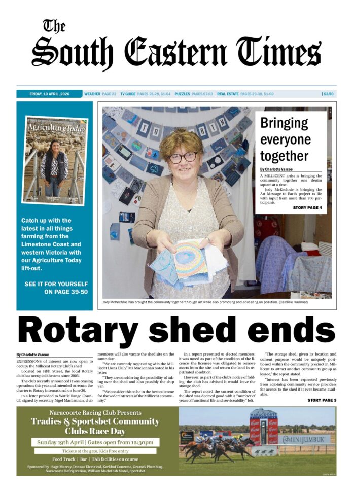 TBW – The South Eastern Times – 10th April 2026 Subscribe or Login to see the rest of the content. Username Password * Remember Me Forgot Password News Actors hit the tavern at medieval fair 09/04/2026 ENTERTAINMENT will not be short at the Mount Gambier Fantasy Medieval Fair this year with a number of skits ready to go. The Mount... Health network staff recognised 09/04/2026 HEALTH officials were recognised at the annual Limestone Coast Local Health Network (LCLHN) Excellence Awards. The awards recognise the outstanding achievements of the people and... Wattle Range youth week underway 09/04/2026 YOUTH Week in the Wattle Range Council area begins this week kicking off with a movie night. The program will run from April 9...